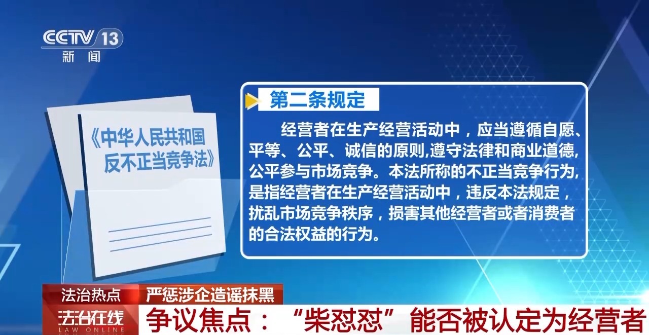 在《中华人民共和国反不正当竞争法》中所称的不正当竞争行为,是指经营者在生产经营活动中违反该法所规定的行为。原告方认为,柴怼怼可以被认定为经营者。